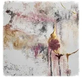 Delicate yet bold, Like a Teardrop captures the fleeting poetry of nature’s imprint on time. Soft washes of crimson, gold, and charcoal seem to bloom and dissolve simultaneously, as if echoing half-remembered dreams. The impression of pressed flowers anchored in molten gold evokes a sense of reverence for the ephemeral — beauty suspended just before it fades. This abstract piece invites contemplation of memory, decay, and the quiet resilience of organic forms.